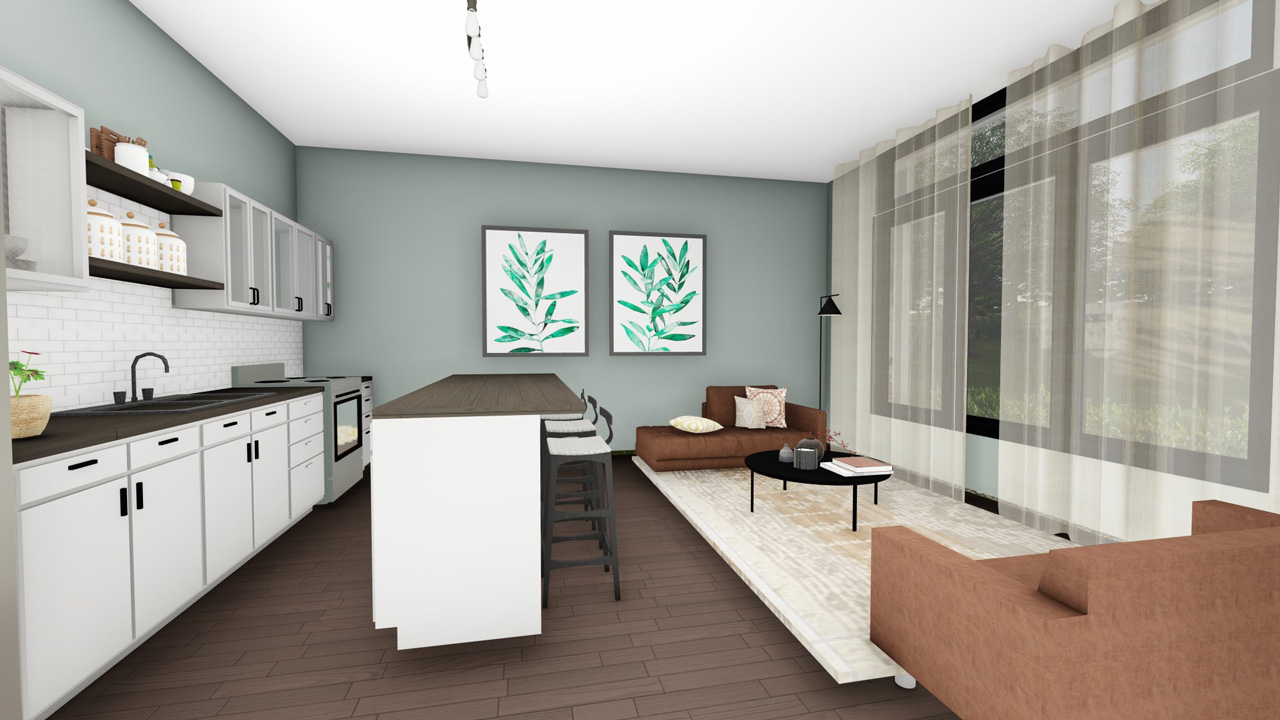Highlights: Kitchen, Living Room, 1 Bedroom, 1 Bathroom