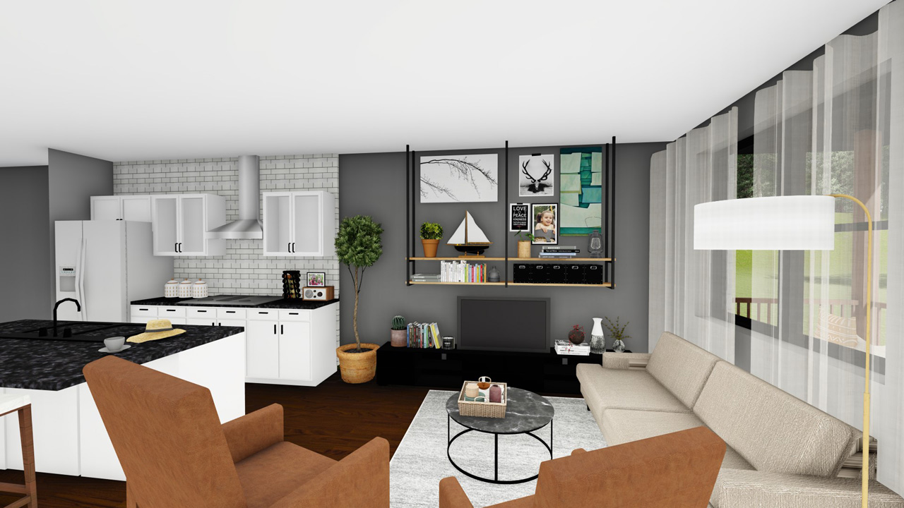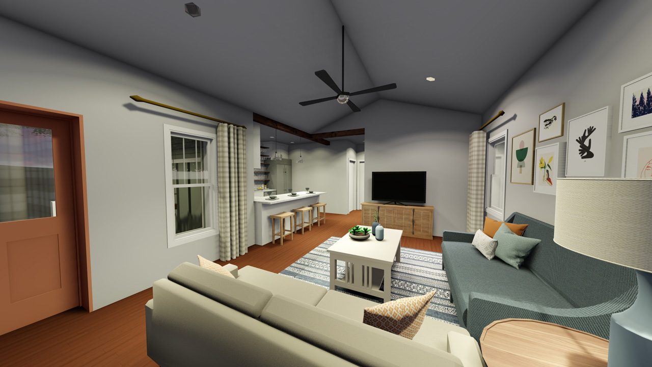 Highlights: Kitchen, Living Room, 2 Bedrooms, 1 Bathroom